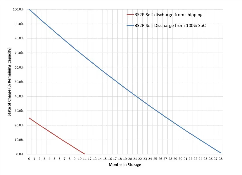 電池容量大小對(duì)于電池儲(chǔ)存保質(zhì)期有直接關(guān)系,更小容量的電池可以?xún)?chǔ)存的時(shí)間更短,更大容量或更多并聯(lián)的電池組,可以安全儲(chǔ)存時(shí)間更長(zhǎng);